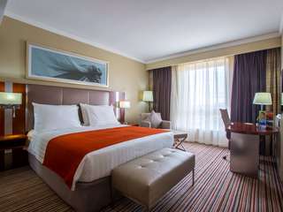 The newest 4-star international hotel in Kiyovu, Park Inn by Radisson, Kigali, boasts 161 nonsmoking, contemporary rooms with a convenient range of accommodations for business and leisure travelers. Decorated in soft and soothing hues, modern furnishing and local artworks, guests can choose from among 123 Standard Rooms, 34 Superior Rooms and 4 One-Bedroom Suites. Enjoy amenities such as free high-speed wireless internet, in-room safe, minibar, and complimentary access to outdoor swimming pool and well-equipped modern gymnasium.