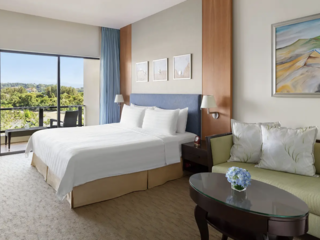 Rooms and suites are spread across two wings, all with private balconies and a choice of sea, garden or Mount Kinabalu views. Interiors are elegant and airy, with modern amenities and spacious bathrooms.