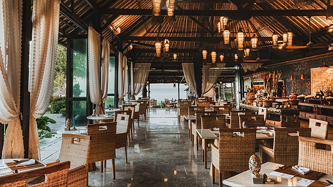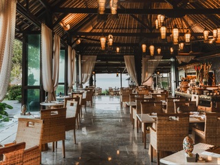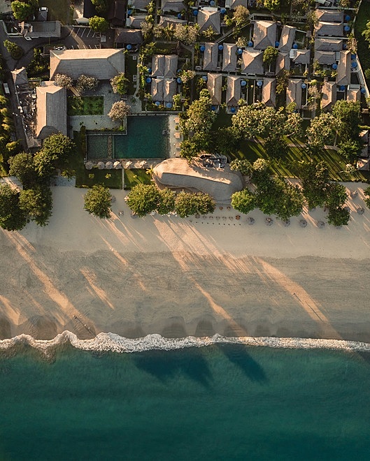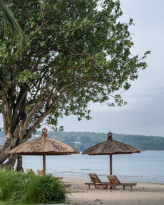 The hotel is located on Jimbaran Bay, about 15 minutes’ drive from Ngurah Rai Airport, in a quiet area with sandy shores.
