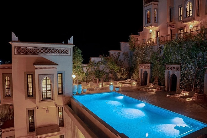 The hotel has 18 rooms, a small pool, restaurant, hammam and lovely gorge views.