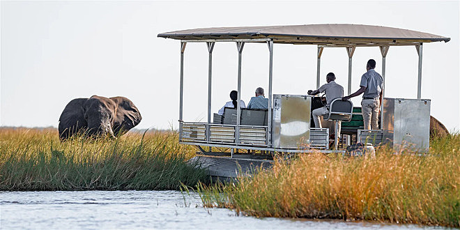 Leisure facilities and activities are included, with daily game drives into Chobe National Park, morning boat cruises on the Chobe River, cultural bicycle tours and night drives in the reserve.
