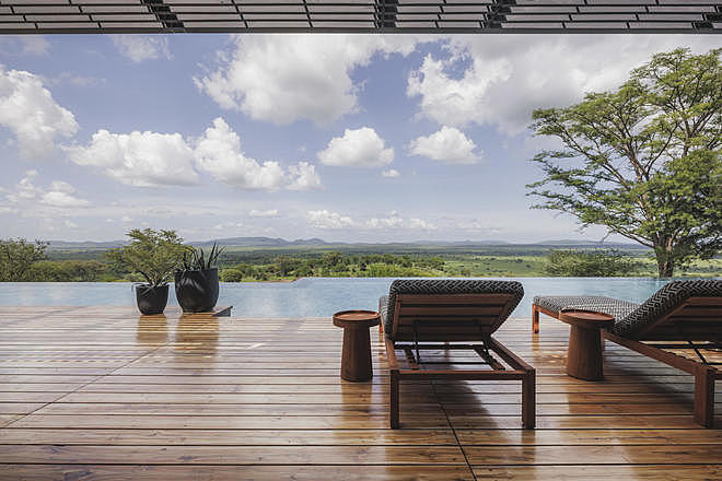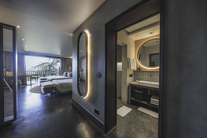 There are more than 60 rooms arranged in blocks along the hillside and include Explorer Rooms and larger Terrace Suites, all with private balconies facing the plains. Interiors are modern in style with neutral tones, en suite bathrooms, and floor-to-ceiling glass to maximise light and views.