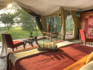 Accommodation consists of spacious canvas tents set on simple platforms, each with an en-suite bathroom with flush toilet and hot safari shower. Family tents are available, and all tents are spaced well apart for privacy.
