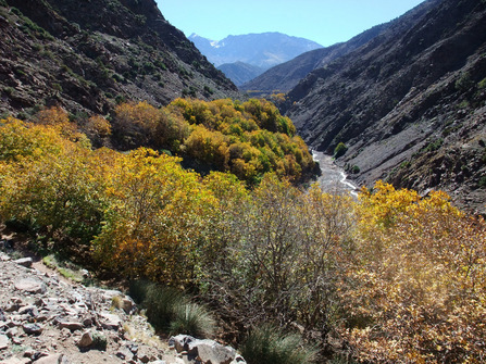 Tizi Oussem – Tinzert After breakfast you will set off walking through the Azzadene valley, passing traditional Berber mountain villages. The view behind you is of the peaks of the High Atlas, whilst the valley ahead offers beautiful scenery with a rushing mountain stream surrounded by lush walnut groves. As you descend you will eventually enter the Ouirgane National Park, a protected area of natural beauty. Tonight you stay in Tinzert, a rustic Berber village. Approx. 5-6 hours walking (640m descent)